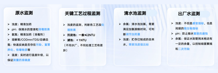 參考《CJJ/T 271-2017城鎮供水水質在線監測技術標準》,各關鍵環節監測指標要求: